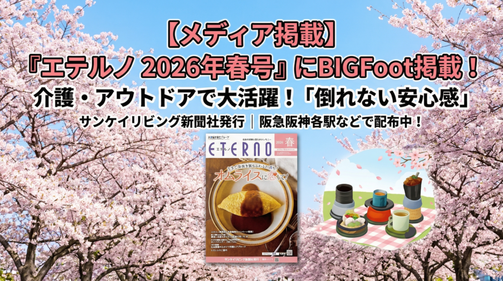 サンケイリビング新聞社様が発行されている情報誌**『エテルノ 2026年春号』にて、私たちの製品「BIGFoot(ビッグフット)カップホルダー」**をご紹介いただきました!