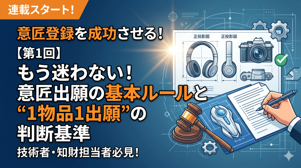 機能の差で差別化が難しい「コモディティ化」が進んだ現代において、意匠権は**「直近の販売戦略に大きな影響を与える強力な武器」**となります。しかし、その武器を正しく使いこなすためには、まず意匠法の基本ルールである「意匠の定義」と「1物品1出願(一意匠一出願)」を正しく理解しなければなりません。